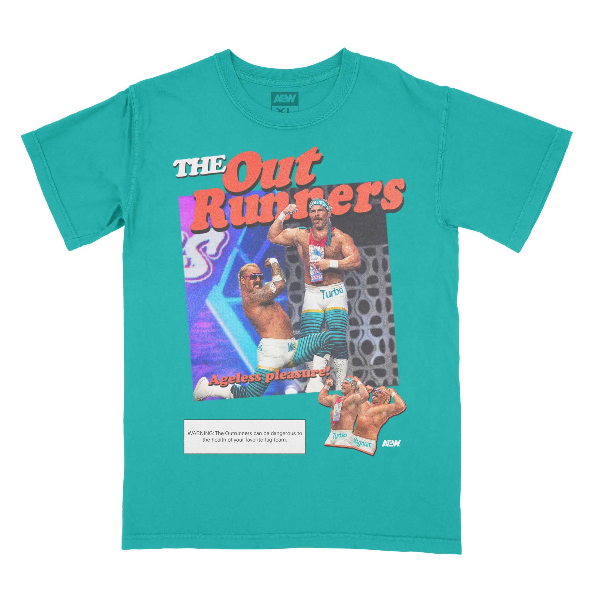 The Outrunners are the youngest, most muscular, and most aerodynamic tag team in the history of professional wrestling. Grab your headbands and get this official merchandise now.