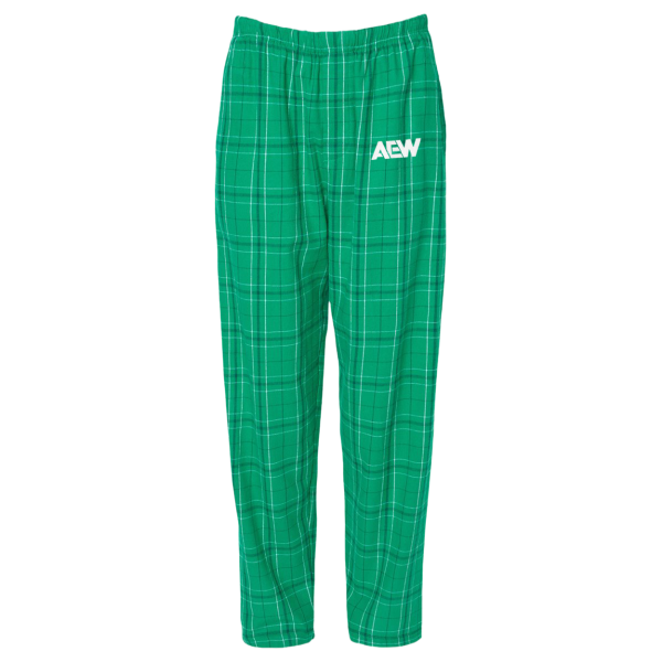 AEW Logo - Embroidered Flannel Pajama Pants - Kelly Green